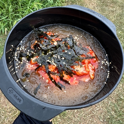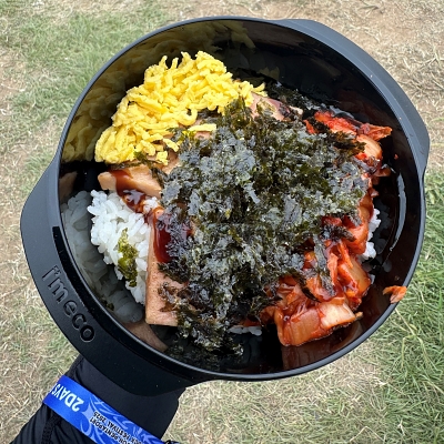 배고픈데 좀 참고(?) 이따 집가서 맛있는거 먹을까 하다가 너무 배고프기도 하고 마지막날 헤드라이너 공연 전이라 품절이 늘고 있어서 별 생각 없이 주문해서 먹었는데 이것도 나쁘지 않았다.. 역시... 밥심인건가.... 먹을땐 너무 깜깜해서 사진 한방 찍고 뭐가 들었는지도 모르고 먹었는데 맛있었다. 재료도 이것 저것 많은 것 같았고 찬밥과 아주 조화로웠음 덕분에 벡 볼때 기력을 차릴 수 있었다